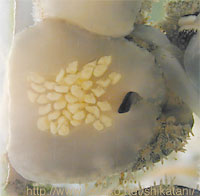 アメフラシ類の卵塊 卵の発生が進み、色が変わっている。