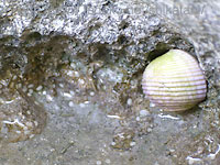 キバアマガイ Nerita plicata ノッチの下の小さな窪みに、