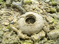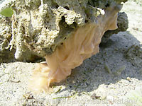 石の下のイモガイ類?の卵嚢 各卵嚢には、卵が数百程度入っている。