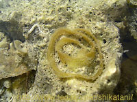 ウミウシ類の卵塊? リボン状の卵塊が、岩の下に