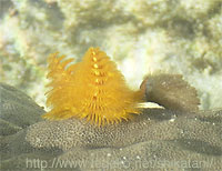 イバラカンザシ Spirobranchus giganteus 黄色い鰓冠と、その右にあるのは蓋