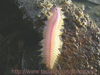 ウロコムシの仲間 ひっくり返した腹側は普通 のゴカイ