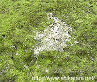 ヒザラガイ類の食痕 普段は左下近くの窪みに隠れる。