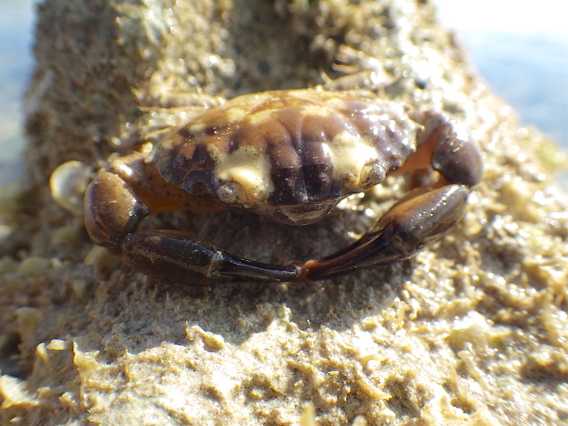 カニもいろいろ。はさみの先が馬のひづめのような形をしている、ヒヅメガニ。