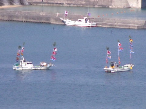 ちょっと岸寄りの船が先だったかな、エークを上げて喜んでいるみたい?