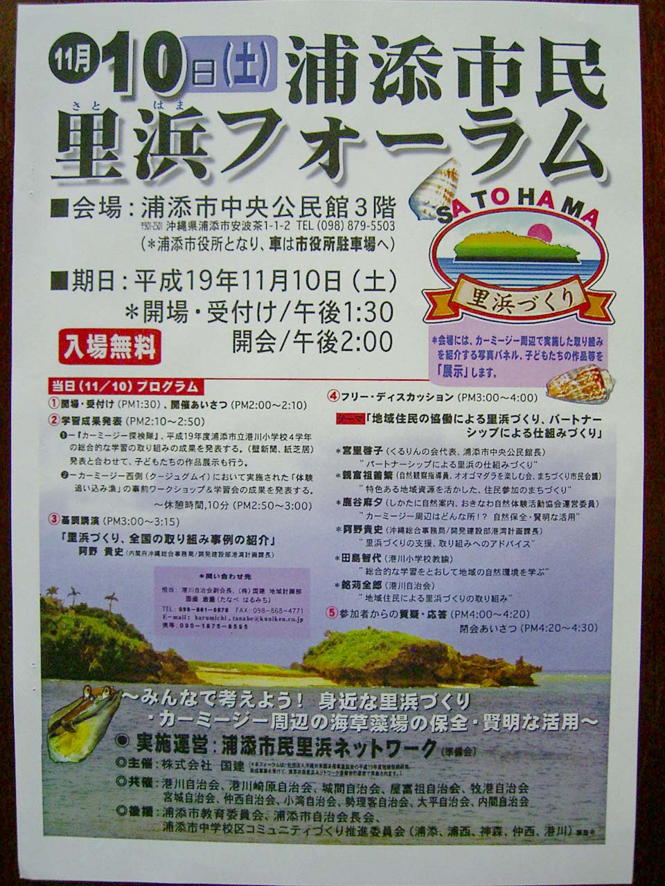 ○3月21日:浦添のカーミージーで、上記の春の里海を楽しむ会が開催されました。
