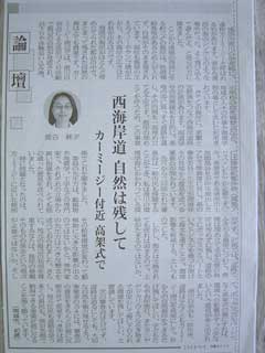 ○5月2日:沖縄タイムスの朝刊に、カーミージー周辺海域の埋立についての意見を